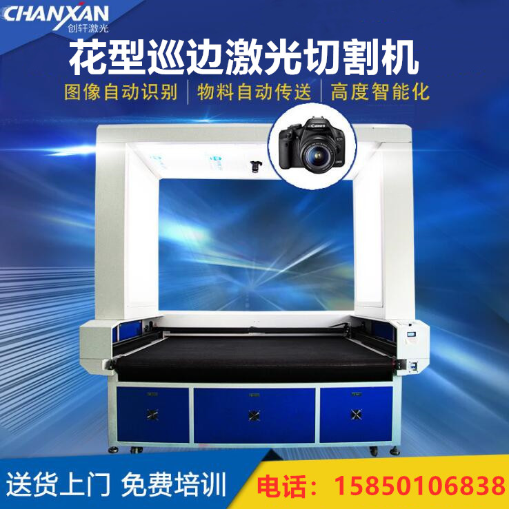 視覺巡邊激光切割機,應(yīng)用于大面積印花面料準確裁切,異形及復(fù)雜圖案的自動識別切割,繡花、商標織嘜等紡織工藝的精準切割;廣告噴繪、寫真布等定位切割。